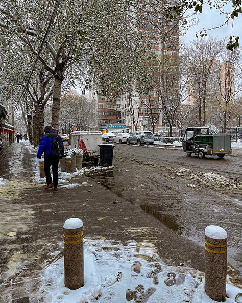 To everyone’s surprise, a heavy blanket of snow fell during our first few weeks in December. But as with most busy cities, heavy commuter traffic meant the main roads became a slushy mess.