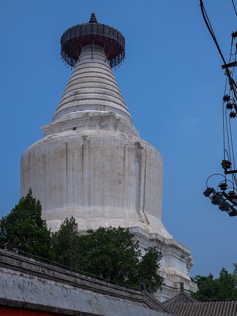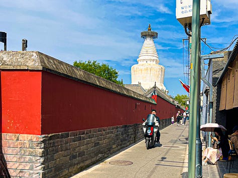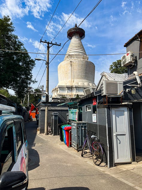 I took the photo while on a breakfast food tour in the Baitasi hutong in western Beijing. Baitasi literally means White Pagoda. The giant white stupa looms over the entire area, and the series of alleyways around it has taken on its name.
